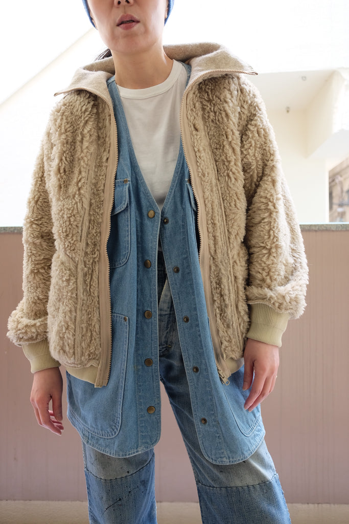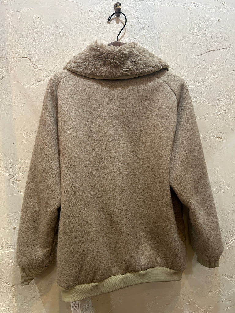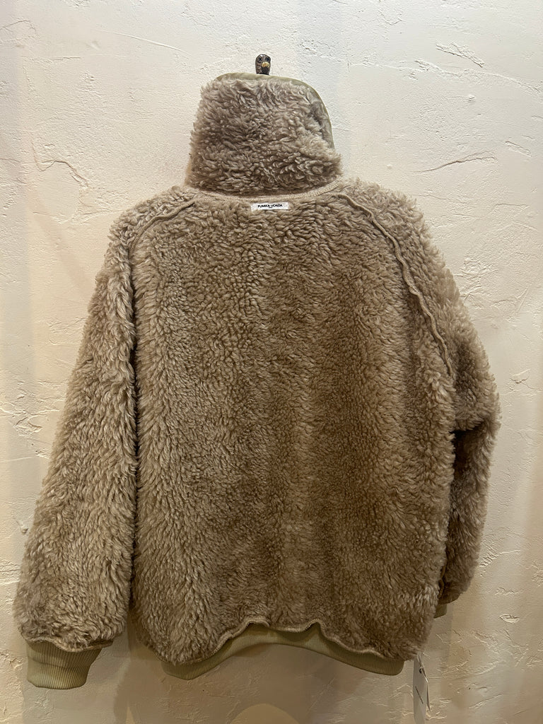 リネンとウールのナチュラルな色を活かしたボアフリース素材。