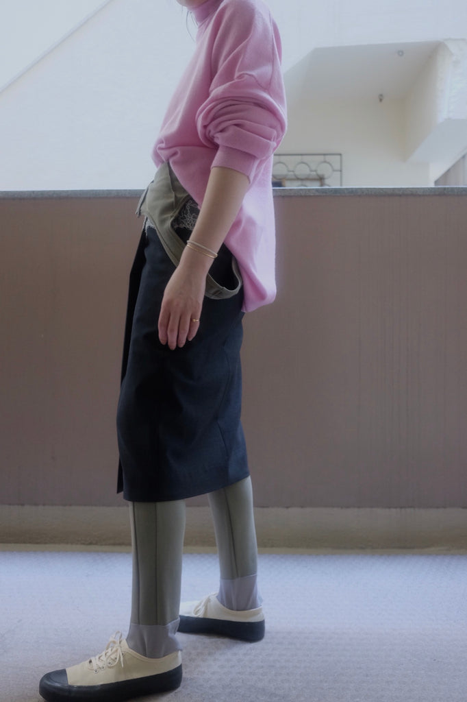 フロントスリットにより足捌きもよく、タイツやソックス合わせが楽しめるスカート。