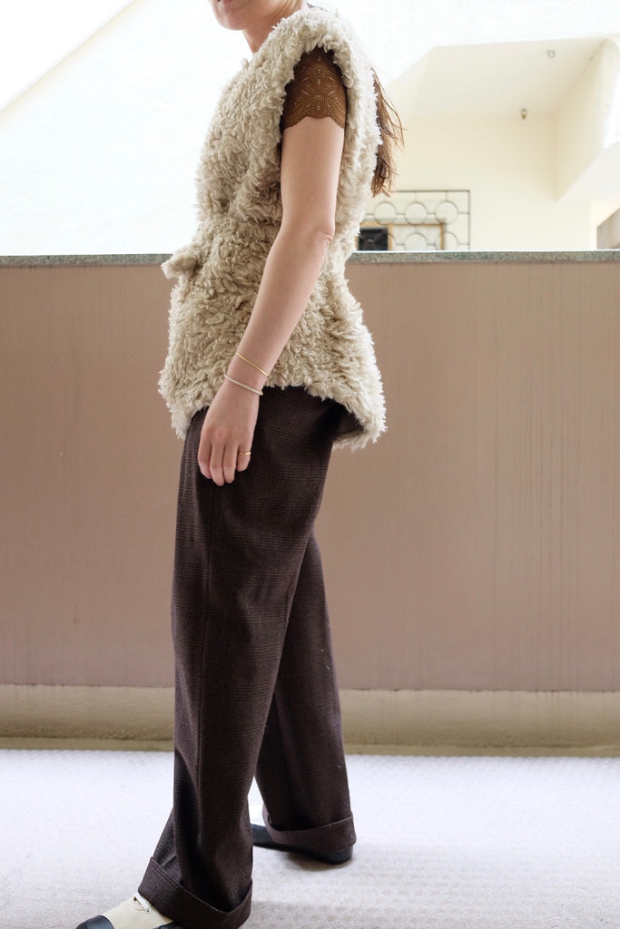 カットソーなどにレイヤードしベストのように、ジャケットの上に着用しアウターの代わりとして、ニュアンス抜群のアイテムです。