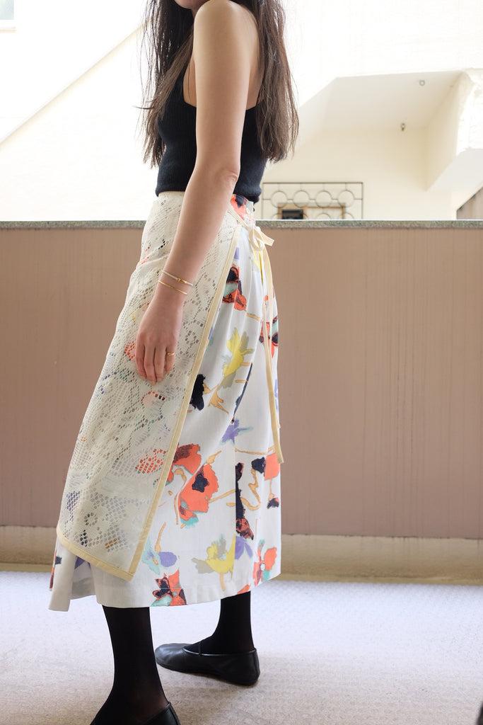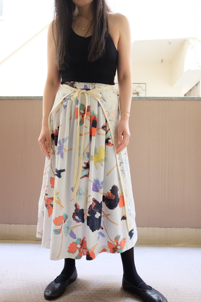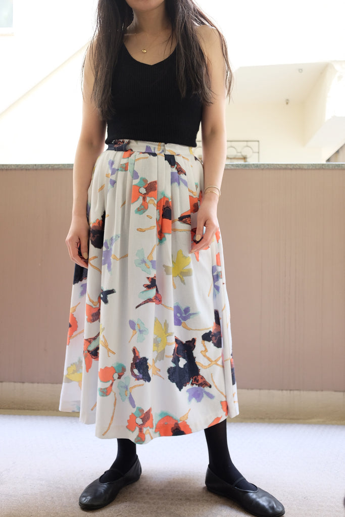 柄の可愛いリネン生地を使用し、生地をたっぷり使った動きのあるAラインスカート。
