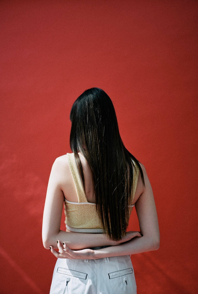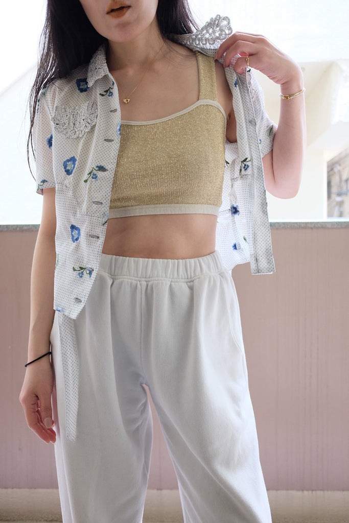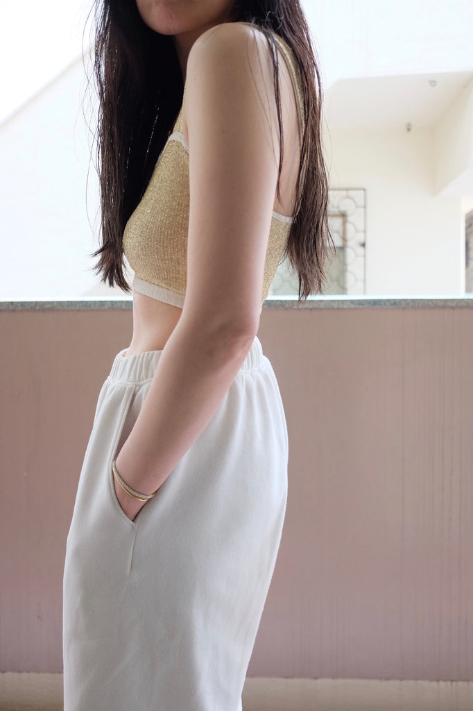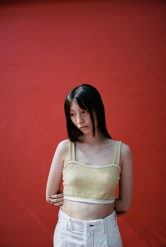 ラメ素材のクロップド丈のトップス。