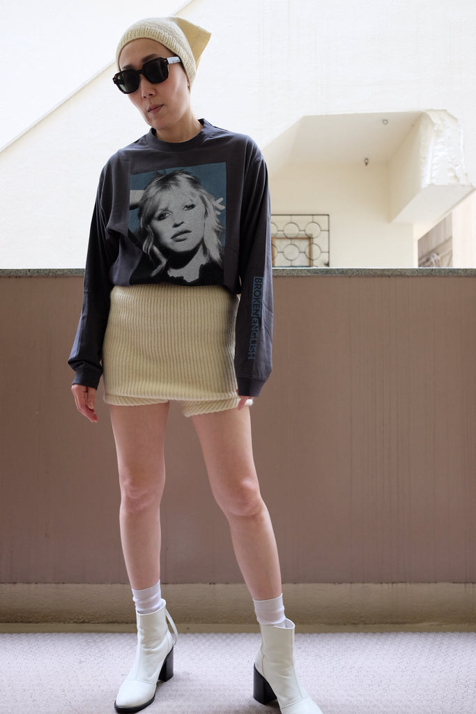 3種のシェットランド素材をブレンドし紡績したオリジナル糸を使用したハンドニットカチーフ。